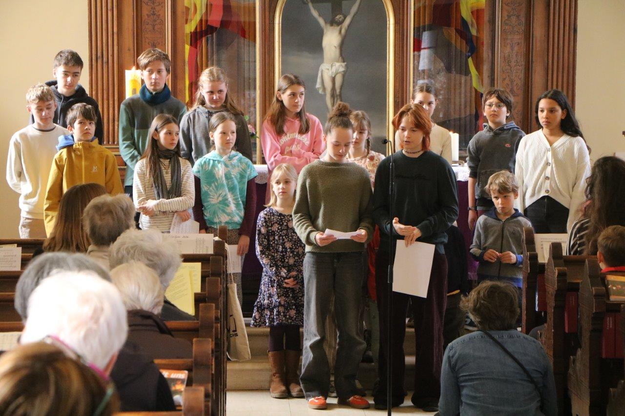 März 2026: Zum Schulbesuchssonntag kamen die Kinder der Evang. Erlebnisschule zu uns in den Gottesdienst. Sie sangen zwei Lieder und gaben uns Informationen über ihre Schule.